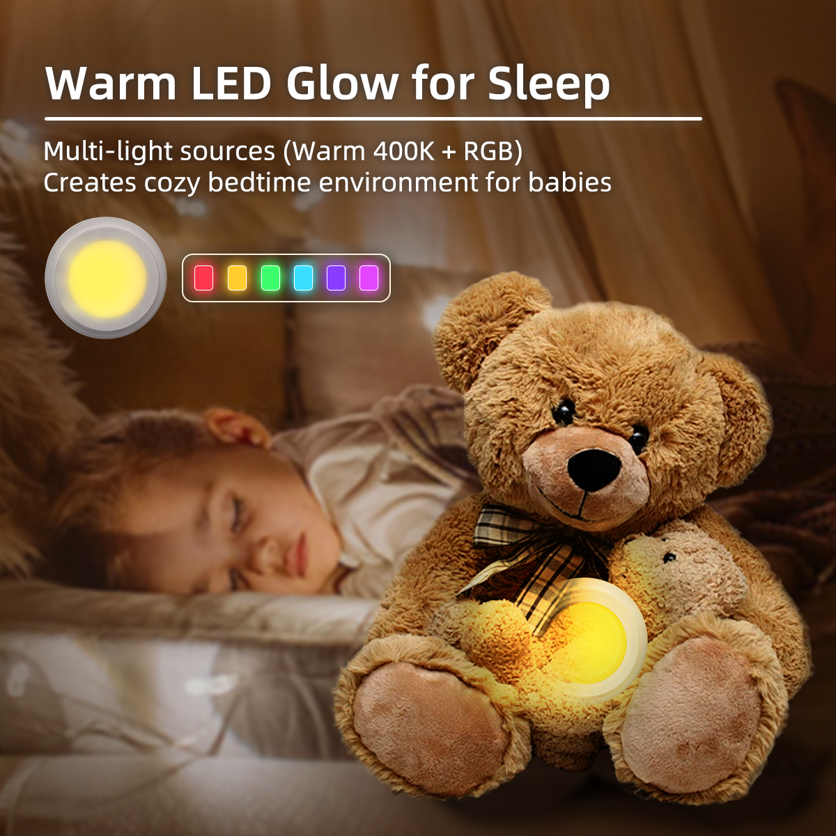 Baby smart detect ● Smart cry sensor● 4 kinds of LED light(400K+RGB)● ABS material● 8 sleep sounds● 600mah lithium battery